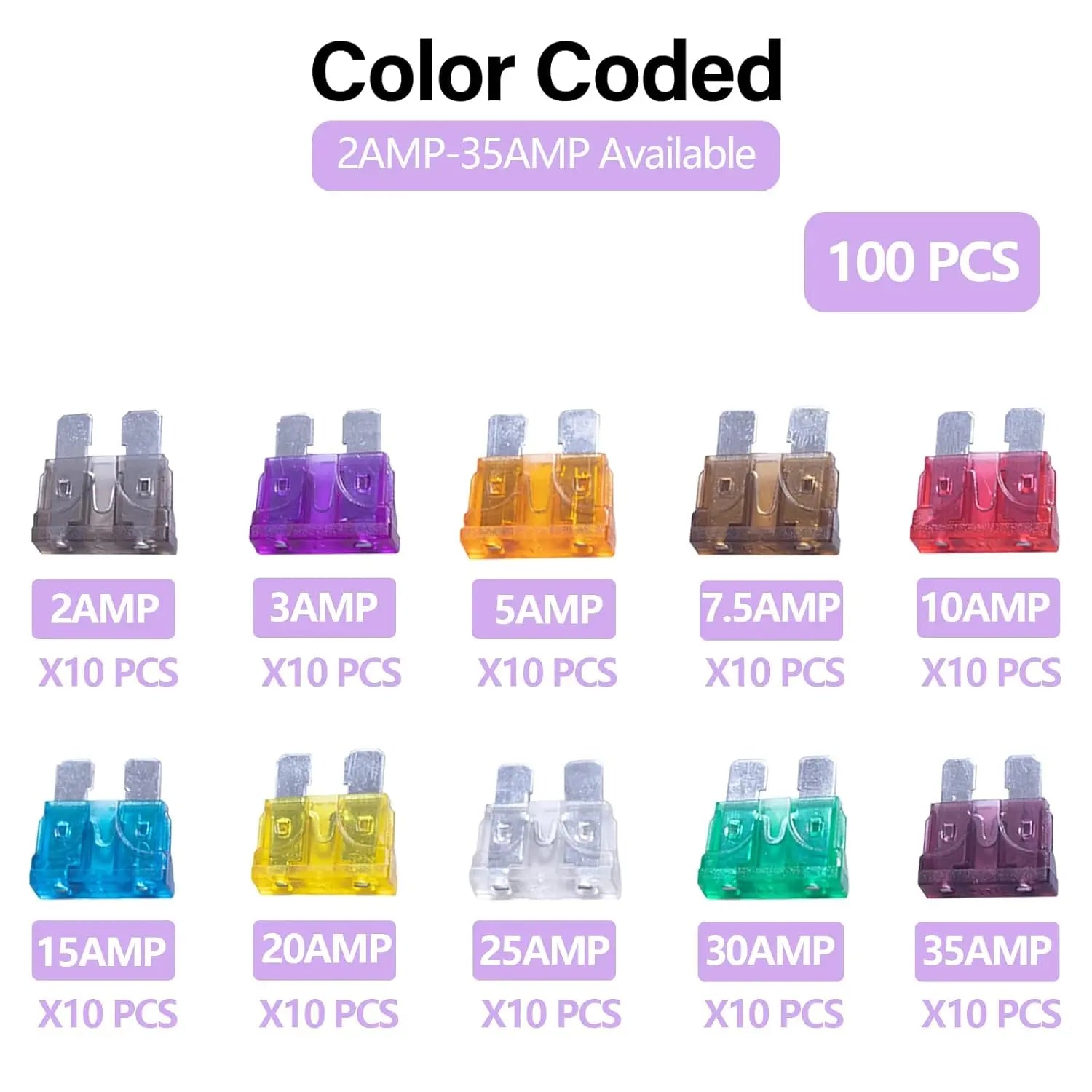 100pcs Low Profile Standard Blade Fuse Assortment 2A -35A 40A Blade Fuses for Car Boat Truck SUV Automotive