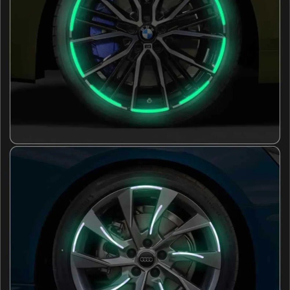 20pcs Car Wheel Hub Reflective Sticker Tire Rim Reflective Strips Luminous for Night Driving Car Bike Motorcycle Wheel Sticker