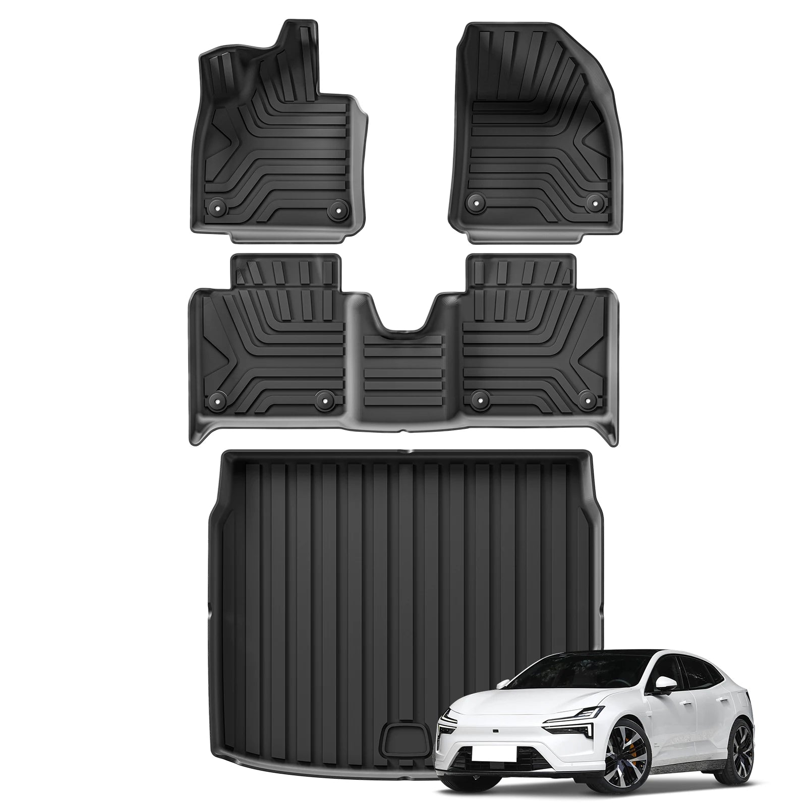 Car Floor Mats Cargo Liner Trunk Pad TPE 3D Foot Mat Waterproof All Weather BLACK For Polestar 4 2025 2024 2023